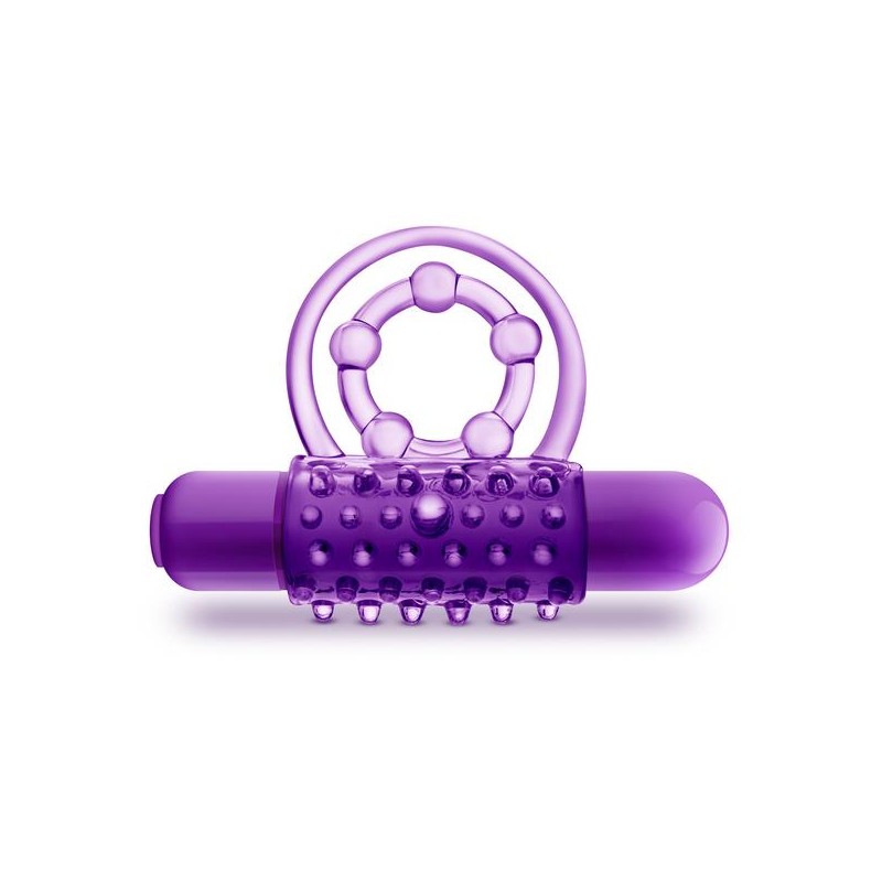 Tiene textura con protuberancias para una mayor estimulación, un anillo doble para el pene y los testículos, y una bala vibradora extraíble.